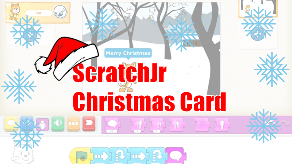 - ScratchJr Christmas Card – In this video tutorial I show you how to make a Christmas Card in ScratchJr for the iPad. We look at moving the characters and make them say some Christmas messages. Suitable for learners aged 5-7.